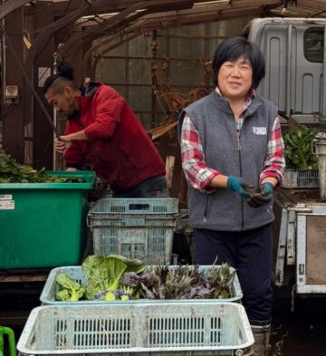 敷地内の直売所で無農薬野菜を対面販売